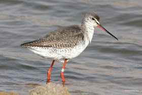 A spotted redshank at rouge valley beach, with a flock of lesser yellowlegs, some killdeer, a great egret, belted kingfishers, and a magnolia warbler.